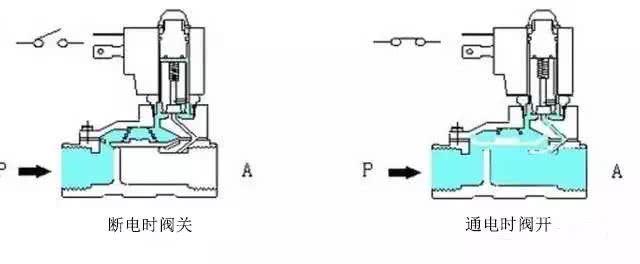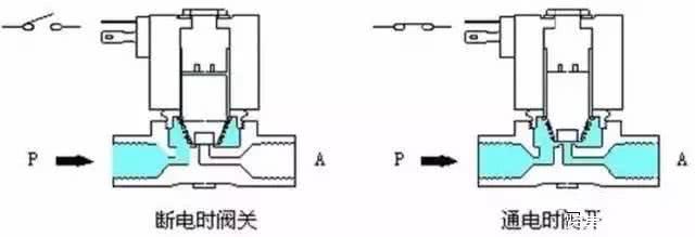 原理:常闭型通电时,电磁线圈产生电磁力把敞开件从阀座上提起,阀门打开;断电时,电磁力消失,弹簧把敞开件压在阀座上,阀门敞开。(常开型与此相反)